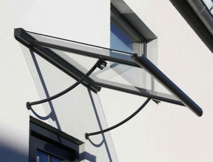 Beispiele für Glasvordächer, Terrassenverglasung, Balkon-
